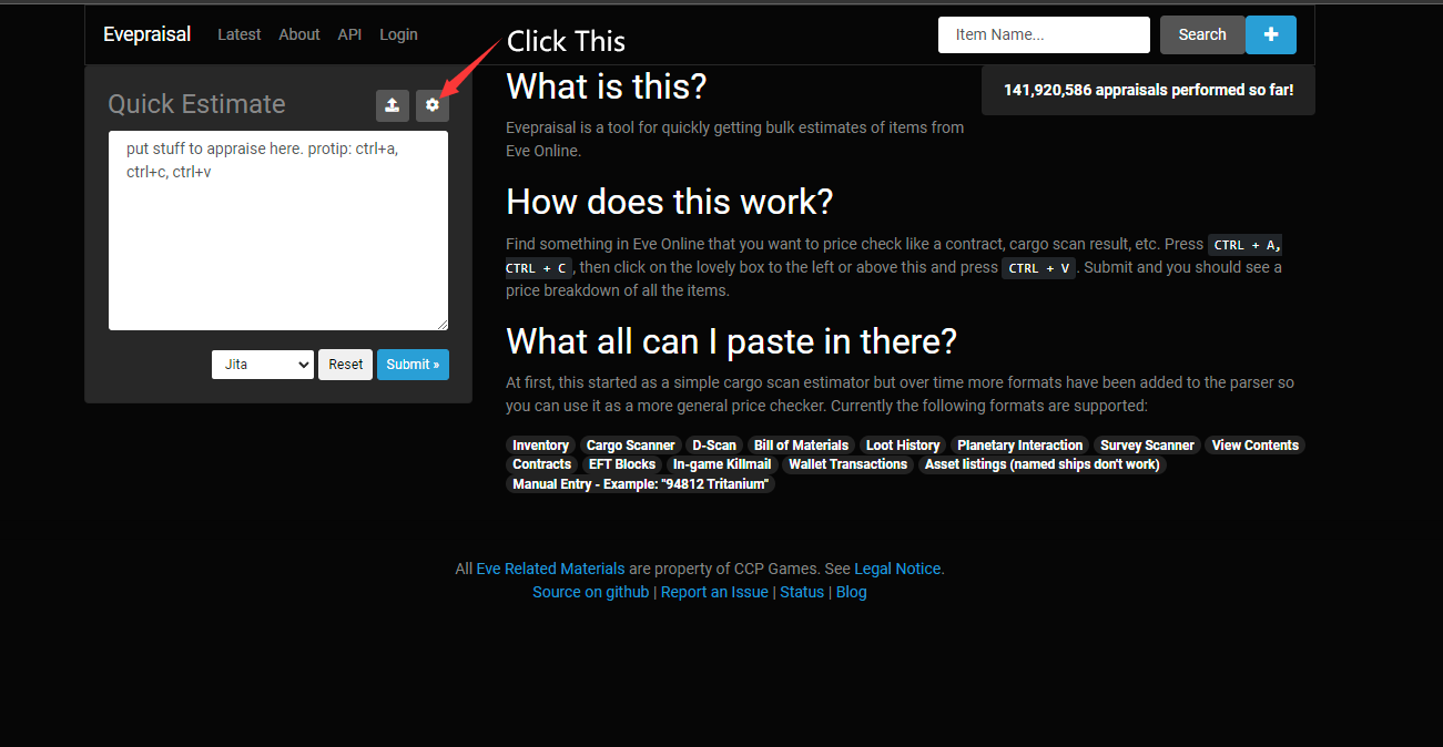 First, open https://evepraisal.com, and Found Setting Button Click It.