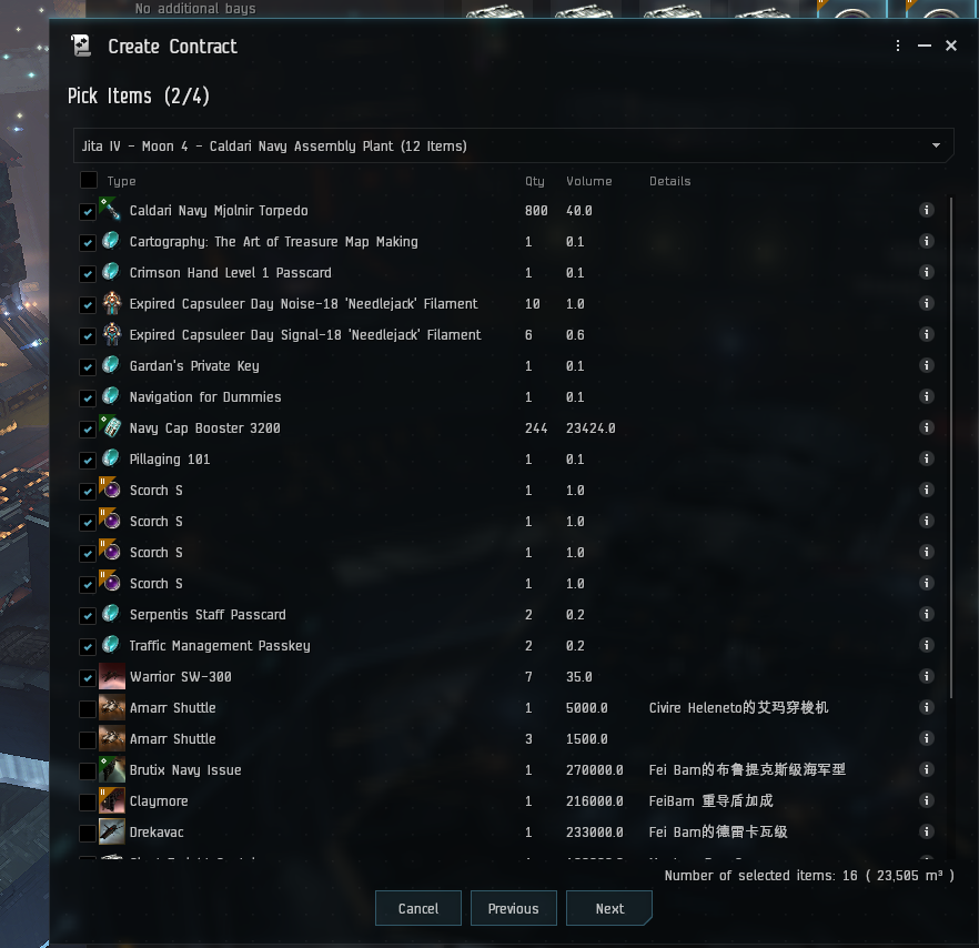 Now go into the game and create a Private Item Exchange contract to Absolute Order IV. To do this, you can simply right click one of the highlighted items and select ‘create contract’. All of the selected items will automatically be included in the contract.